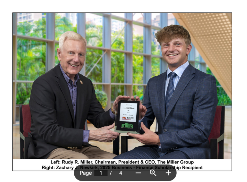 The Miller Group Awards The Twenty - Fifth Rudy R. Miller Business Finance Scholarship to Arizona State University Senior